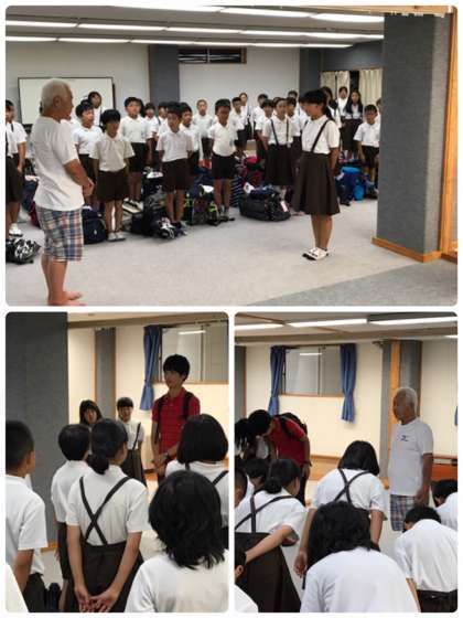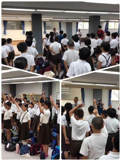児童司会のもと、校長先生のお話、宿舎の方のお話、児童代表の挨拶、林先生のお話と続きました。