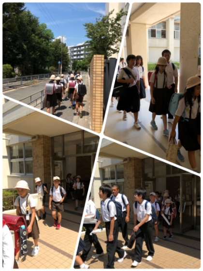 本日3時間目は、避難訓練、集団下校でした。今年度は、淀中学校と連携し小中合同での集団下校となりました。たくましいお兄さん、お姉さんに小学生も驚いている様子でした。