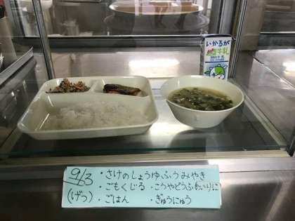 です。9月最初の献立は、和食です。今日も美味しくいただきます。