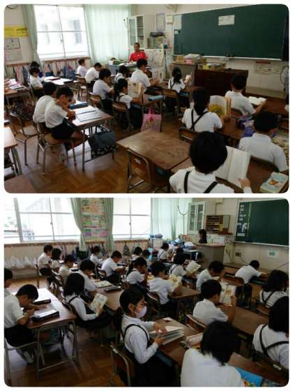 6年2組では、担任の鈴木先生が声を変えて、可愛らしい声で紙芝居を読み聞かせされていました。クラスの子どもたちはみんな笑顔で紙芝居を聞いていました。