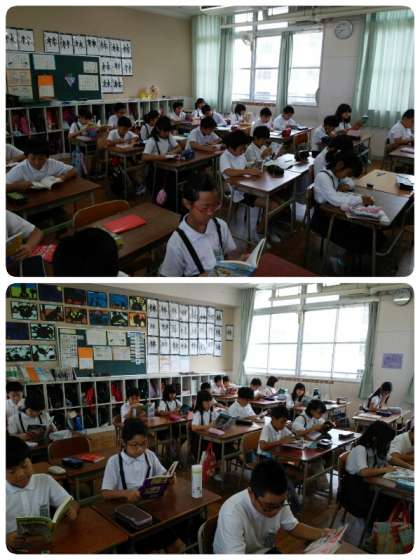先生による読み聞かせのクラスあり、自分が手にした本を黙々と読書するクラスあり、さまざまです。