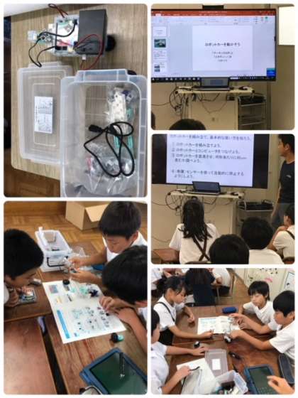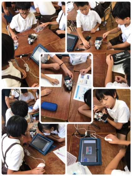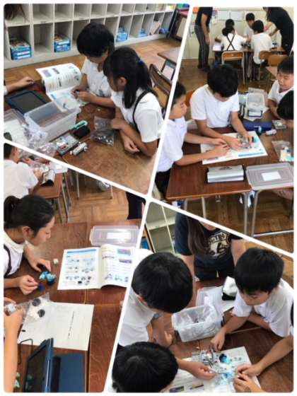 13日の6時間め、パソコンクラブは、プログラミングにチャレンジしました。山本先生のご指導のもと、今日はロボットカーを作り動かすところまでやりました。
