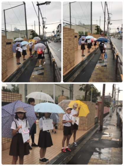 9月も最後の週になりました。児童会があいさつ運動をしています。雨降る中、元気なあいさつの声をかけています。