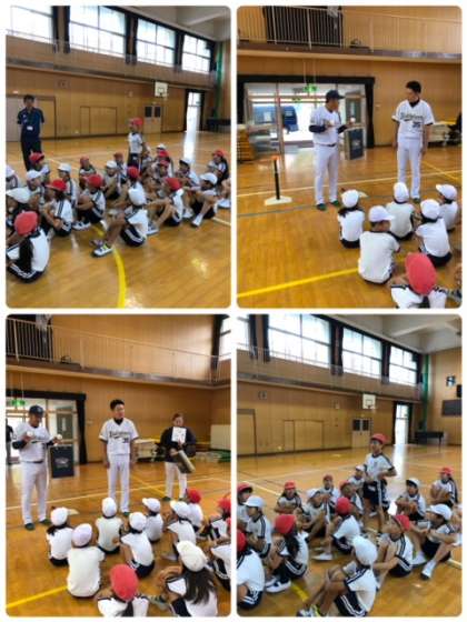 試合の後は、プロ野球の事について、いくつか質問をさせてくださいました。最後に、プレゼントもいただき、記念撮影をして終わりました。とても、有意義な時間でした。