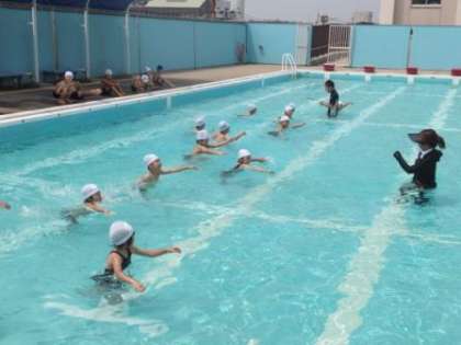 たくさんプールに入ることで水に慣れていき,プール納めまでには,1年生が少しでも長く泳げるようになってほしいです。