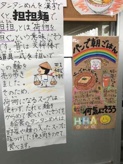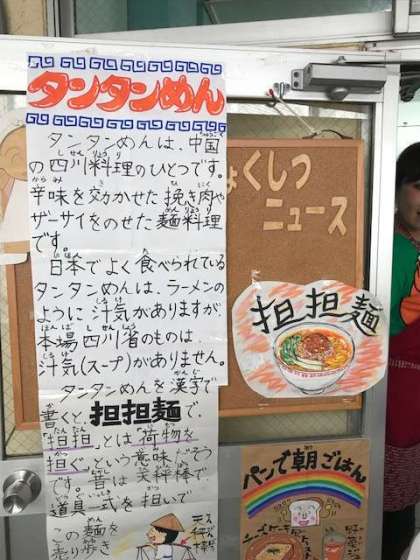 タンタン麺は、麺を食器に入れた後にさらにひき肉をのせて完成です。手間の込んだ、美味しい給食です。