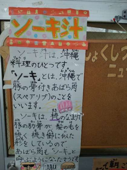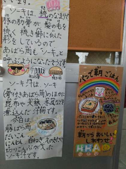 今日は少し肌寒いので、ソーキ汁は体が温まるのにもってこいです。どの献立も児童に人気のメニューです。