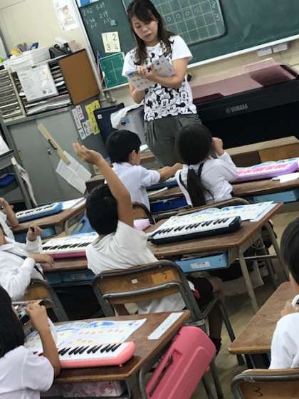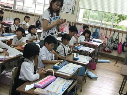鍵盤ハーモニカの練習の成果を発表しています。毎日の積み重ねが大切です。