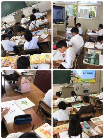 1年生は道徳。狼を助けるか助けないかしっかり考えて話し合っていました。