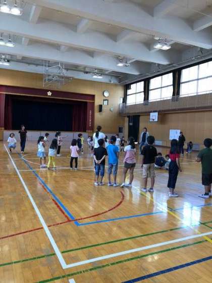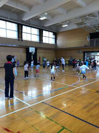 低学年は転がしドッジをしたり、中高学年は親子でドッジボールをしたりと大盛り上がりです。