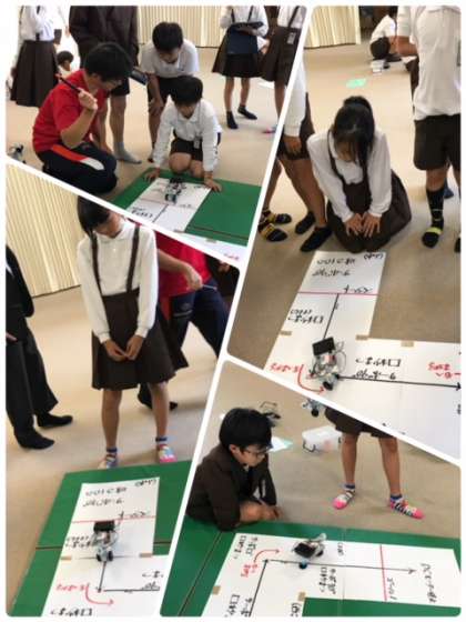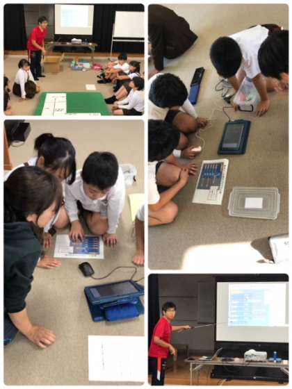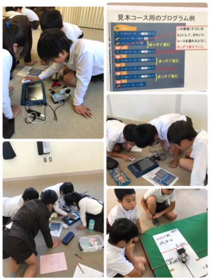 パソコンクラブでは、たてわりグループを作り、プログラミング学習に挑戦しています。ロボットを組み立て、決められたコースの通りに動かすプログラムの工夫に挑戦しました。よく協力して話し合いながら、チャレンジしていました。