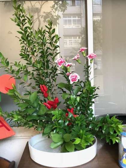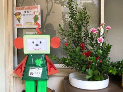 生涯学習ルームの生け花の方々が、いつも素敵な作品を、校長室前に飾っていただいています。