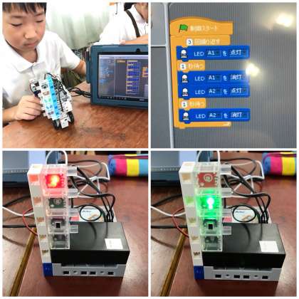 子どもたちは、ロボットが動くようにタブレットでプログラムを作っていきました。