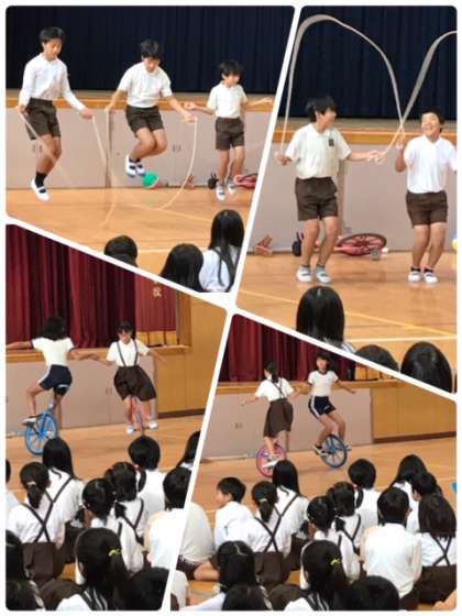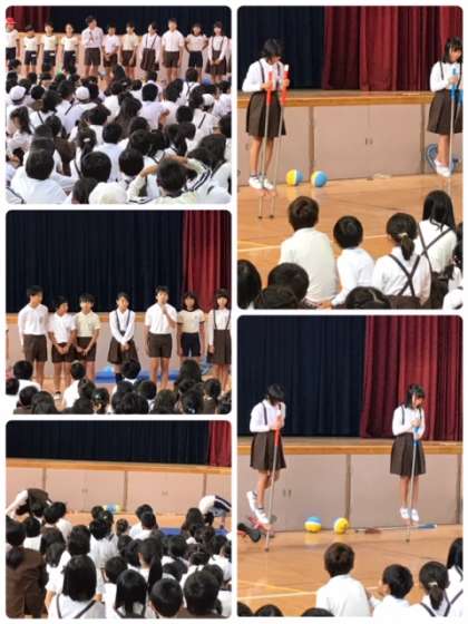 24日のなかよし集会は、運動委員会の発表でした。みんなしっかり運動場で身体をうごかしてほしいので、いろいろな技を紹介しました。