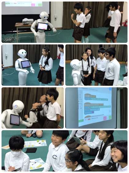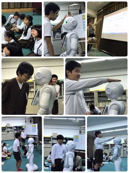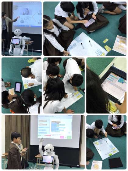 「頭をさわると」だったり、「この言葉を聞くと」だったり指示をすると、ペッパーくんが話します。ユニークな紹介に教室内は和やかな雰囲気になり、楽しい中に学びがあり有意義な時間を過ごしています。