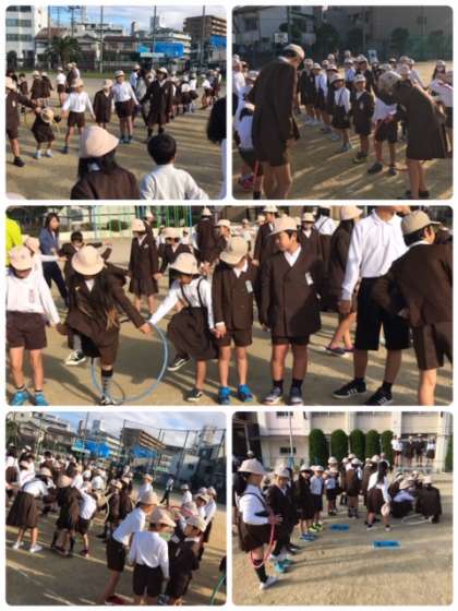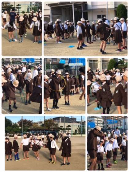 14日のなかよし集会は、手繋ぎフラフープゲームです。