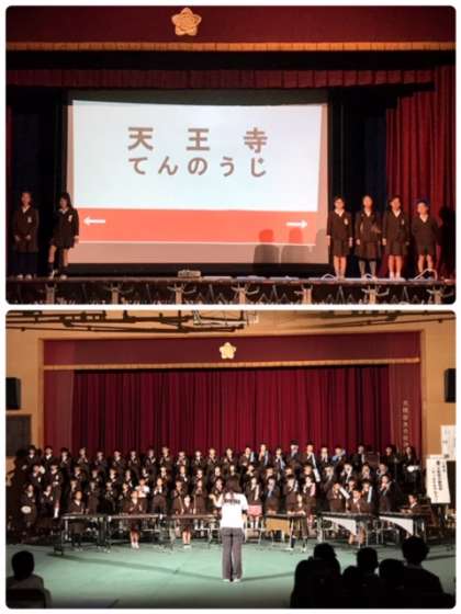 2年生の発表には、交流先の特別養護老人ホームの方を招待していました。