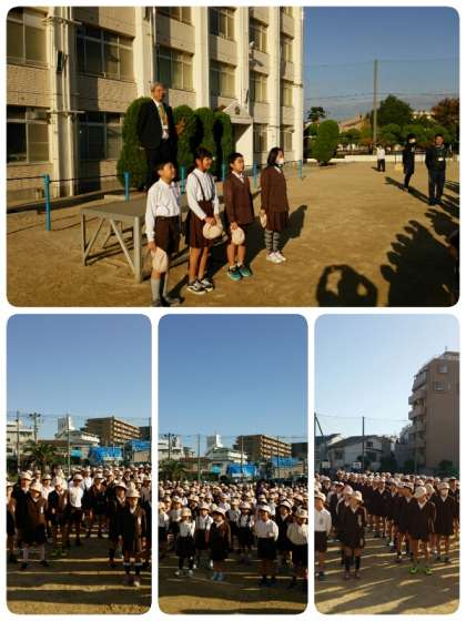 今日の児童朝会では、まず校長先生から、「芸術の秋」(先週の学習発表会の振り返りのお話)と一昨日の西淀川区一斉防災訓練についてのお話をしていただきました。