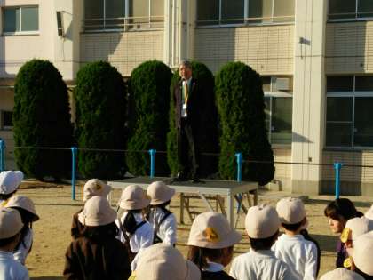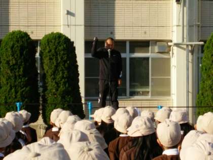 次に、生活指導の先生からは、しっかりとあいさつがてきていること、寒くなってきてポケットに手を入れて歩いたり、袖を伸ばして中に手を入れたりする様子が見られたので、きちんと手を出して、服装も正しましょうと、2つのお話がありました。