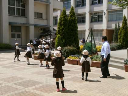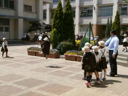 2年生が、中庭で校長先生とながなわをしてあそんだよ。