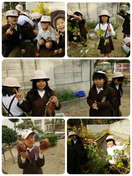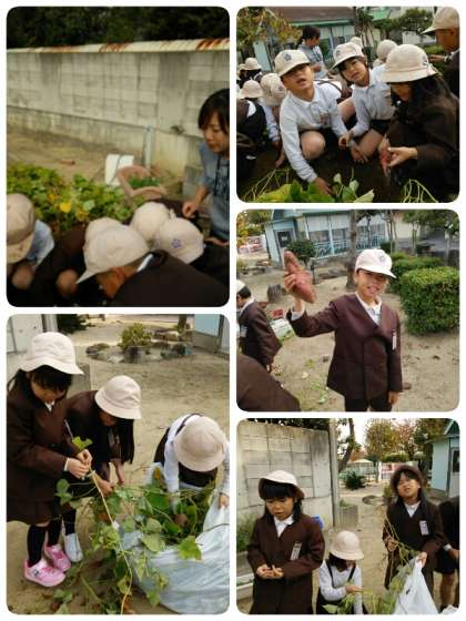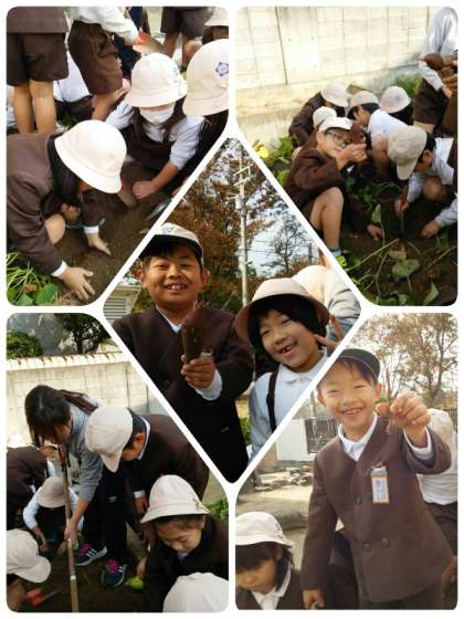 みんな笑顔でおいもほりを楽しんでいました。収穫したさつまいもを使って、後日、おいもパーティーをするようです。子どもたちは、今から大変楽しみにしています。