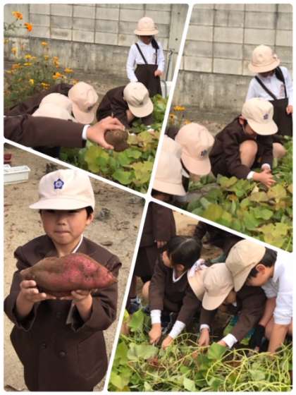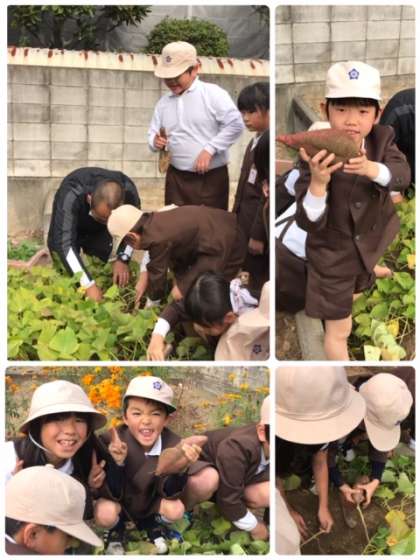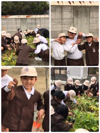 4時間目に、2年1組が、さつまいもの収穫を行いました。