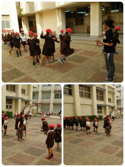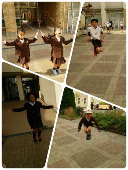 中庭では、3年生も元気になわとびをしていました。