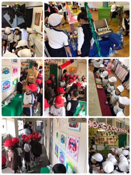 大和田幼稚園の作品展を、1年生が参観に行かせていただきました。
