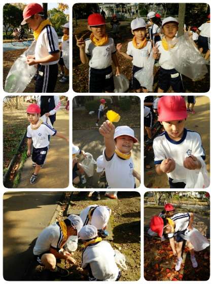 緑陰道路での秋みつけを終え、帰りには学校前の中央公園にも寄りました。