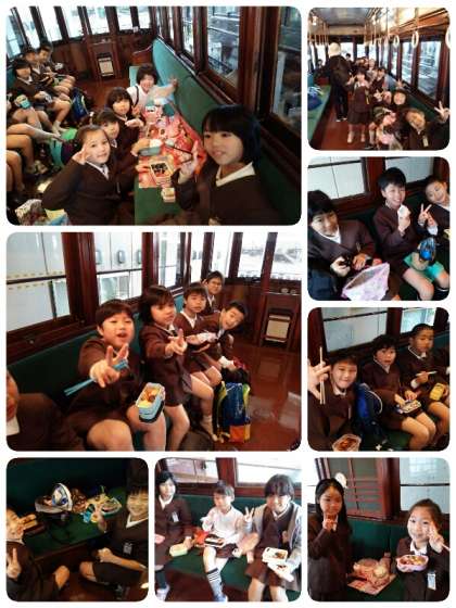 なんと大正時代に使われていた電車の車内で食べることができました。