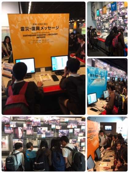 阪神大震災の映像を見た後、さまざまな展示を見学しました。当時の被災の様子を目の当たりにしました。