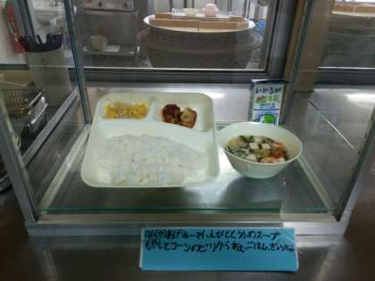 温かいスープを飲んで、しっかりと食べて、午後からも学習、運動を頑張りましょう。