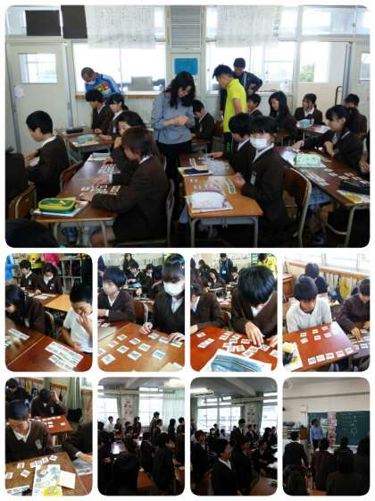 「道案内や、物の位置を尋ねたり答えたりする表現に慣れ親しむ。」ことをねらいとし、ゲームなどのアクティビティを通して音声表現したり、最後は聞き取ったことを書く活動もしたり、バラエティー豊かな学習活動でした。