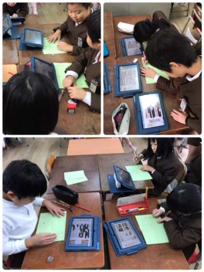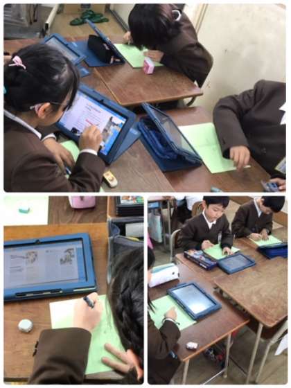 これも情報活用能力を育てる授業です。子どもたちは、手際よく、グループで相談しながら、取り組んでいました。