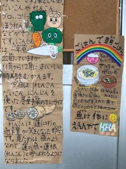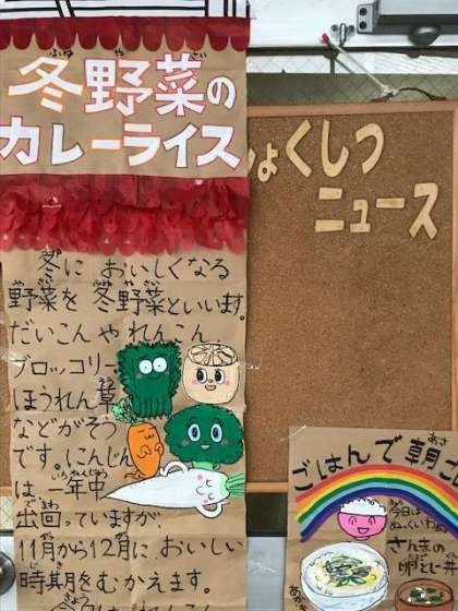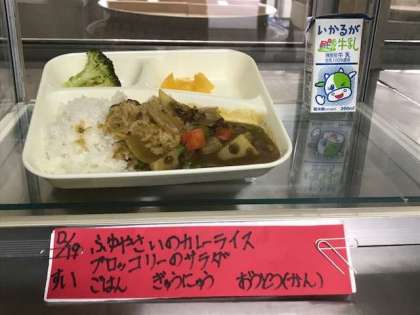 子どもたちに大人気のカレーライスに、シャキシャキとしたレンコンなどの冬野菜がたくさん入っています。