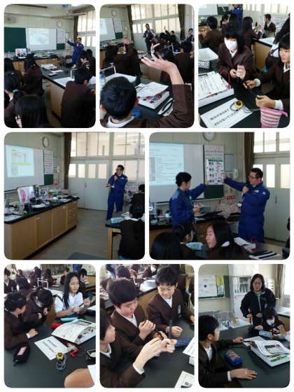 3時間目は、まず1組が学習しました。みんな熱心に話を聞き、実験に取り組みました。