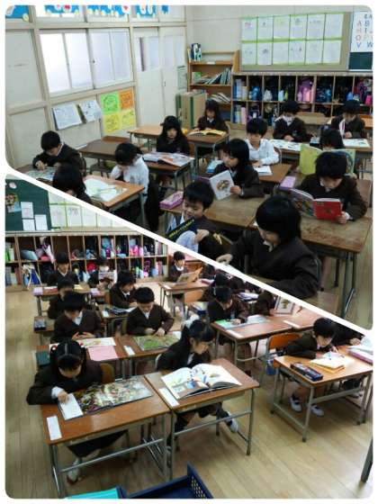 高学年は、今日は担任の先生が読み聞かせをし、子どもちは本の中に引き込まれるように、みんな話に聞き入っていました。