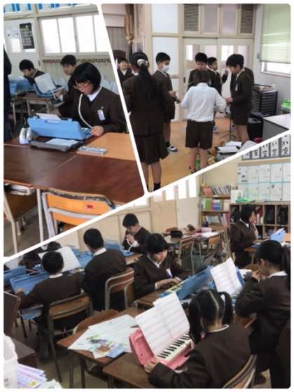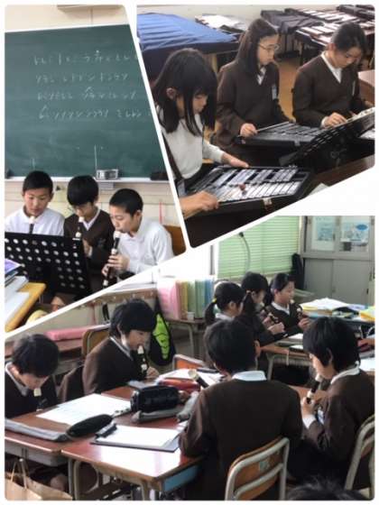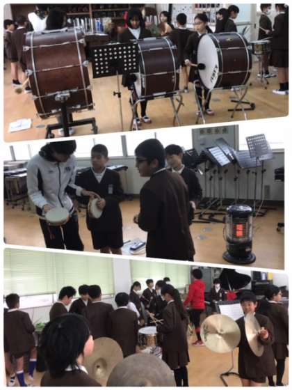 パートに分かれて、それぞれの楽器ごとにグループ練習しています。