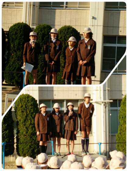 最後に、生活指導の先生から以下3点のお話がありました。1、遊具の片付けがきちんとできていました。これからも続けていきましょう。2、手洗い、うがいをしっかりとして風邪やインフルエンザの予防をしましょう。3、今週はあいさつ週間です。元気にあいさつをしましょう。