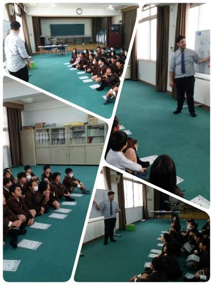 3年1組と同様にアルファベットのゲームをしたり、曜日のゲームをしたりして、カルロス先生に負けないくらい元気に声を出していました。