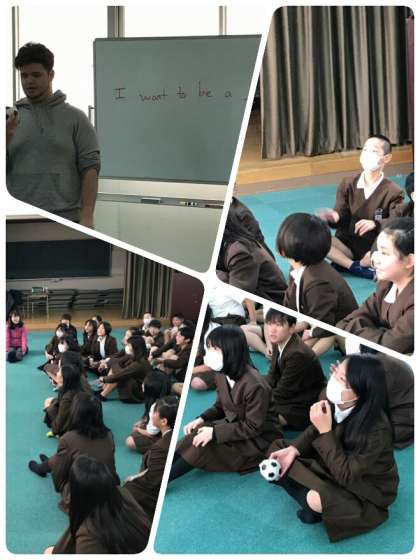 I like 〜. I want to be 〜. など、今までの外国語活動や朝のフォニックスで学習したことをゲーム形式で行い、最終的には全員が自分の好きなものや、自分が将来なりたいことを言いました。