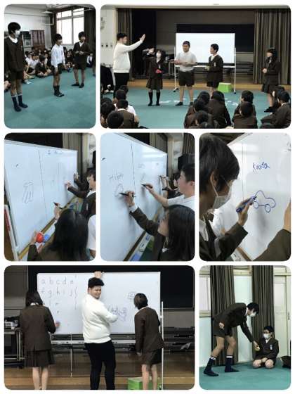 また、先生が言った単語を黒板に書くというゲームもしました。