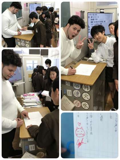 終了後には、カルロス先生が教室を訪れてくださり、カルロス先生の絵のサインをノートにかいてもらうなどして、みんなが先生との別れを惜しんでいました。