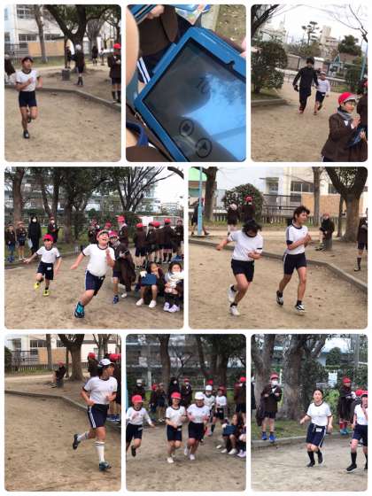 3学期から体力を高める運動を行っています。今日は大和田中央公園でマラソン大会に向けて、持久走をしました。
