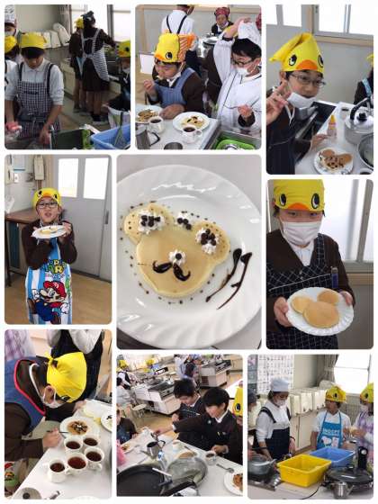 ホットケーキのデコレーションでは、パティシエが作りそうなオシャレなものを作る児童や、普段お世話になっている人な日頃の感謝の気持ちを表現して作る児童もいて感心しました。