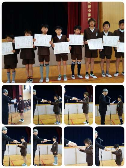 まず、個人表彰。高学年・中学年・低学年のそれぞれベスト3を表彰しました。大変よく頑張りました。
