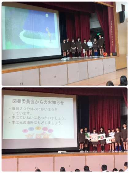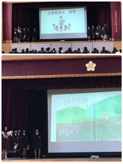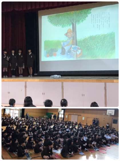 スクリーンを使って、読み聞かせをしました。とても上手に読むことができていました。