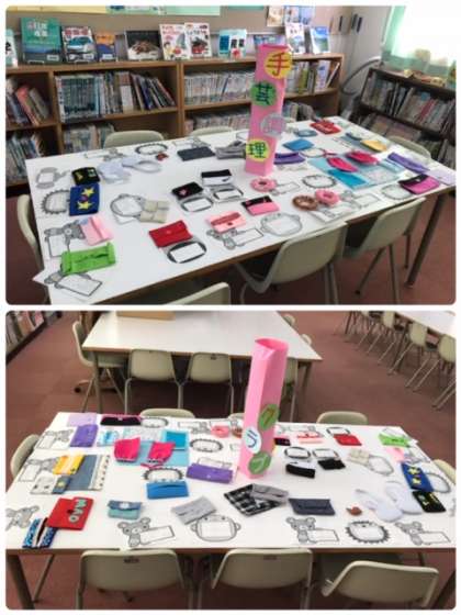 先週クラブ見学会がありました。実は、手芸・調理クラブは図書室に、科学・工作・イラストクラブは図工室に、作品を展示していました。