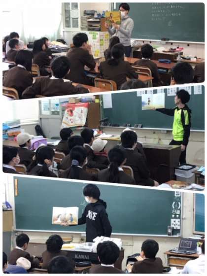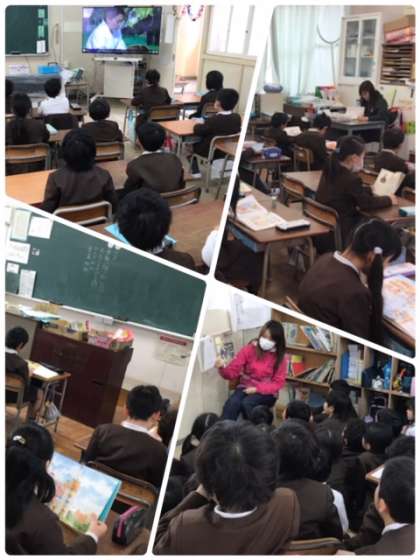 先生による読み聞かせ、書画カメラを使っての読み聞かせなどや、一人で黙読するクラスもあります。