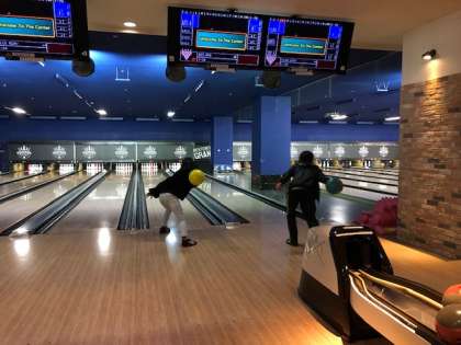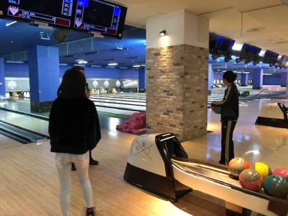 始球式は、1組 加納さん、2組石川さんが投げました。惜しくもストライクとはいきませんでしたが、上々のスタートです。